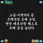 소음·이격거리 등 주택건설 규제 손질, 현장 애로사항 해소로 주택 공급 늘린다