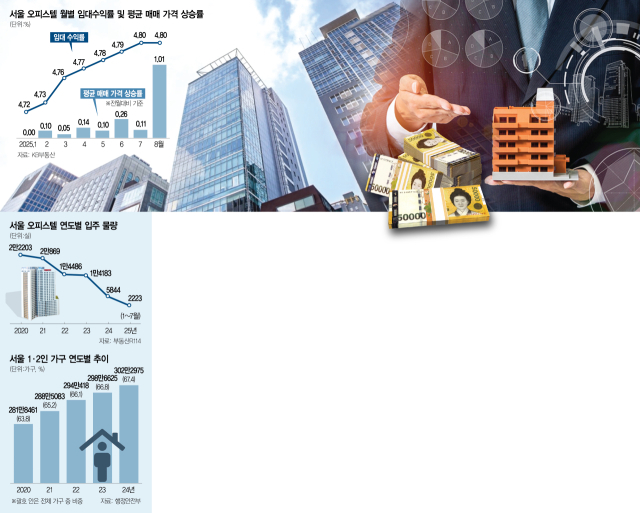 서울에서 오피스텔의 공급은 줄면서 주요 수요층인 1·2인 가구가 증가하는 것도 오피스텔 투자의 매력을 높이는 요소다. 연도별 서울 오피스텔 입주 물량은 △2020년 2만 2203가구 △2021년 2만 869가구 △2022년 1만 4486가구 △2023년 1만 4183가구 △2024년 5844가구 △올해 1~7월 2223가구로 감소세가 뚜렷하다. 부동산R114 관계자는 “2022년부터 본격화된 건설 경기 악화의 영향으로 건설업계의 자금 조달이 어려워지면서 아파트뿐만 아니라 오피스텔 공급도 감소하는 추세”라고 설명했다.