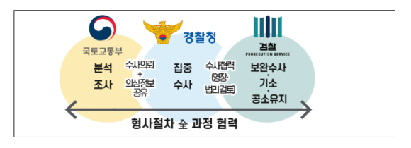 □ 국토교통부(장관 김윤덕)ㆍ대검찰청(총장 직무대행 노만석)ㆍ경찰청(청장 직무대행 유재성)은 서민주거 안정을 저해하는 전세사기 근절을 위해 ’22년 7월부터 「범정부 전국 특별단속」을 무기한 시행 중이며, 형사 절차 전 과정에서 긴밀한 수사협력체계를 구축해 수사를 진행하고 있다.