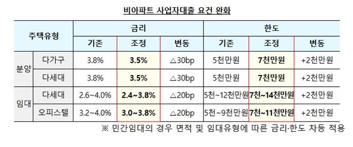 비아파트 사업자대출 요건 완화