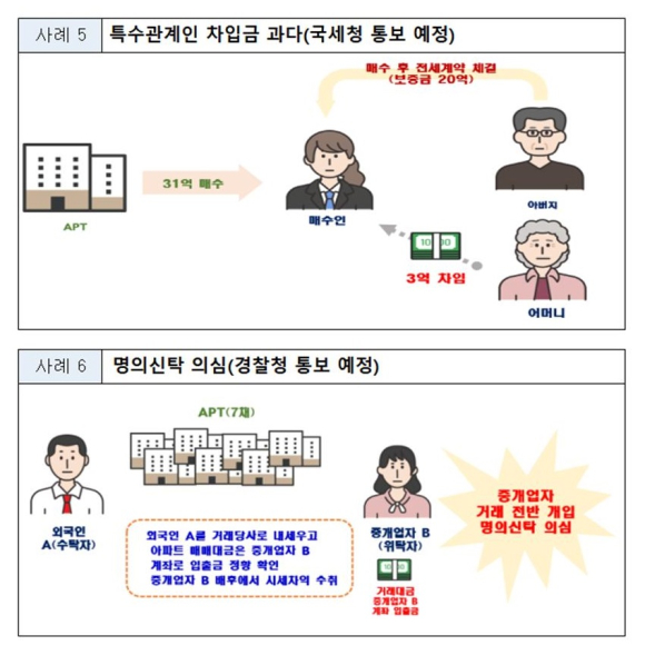 ⑤ (명의신탁 등) 주택 거래를 하면서 주택의 실질적 소유자와 등기사항전부증명서상 명의자가 다른 것으로 의심되는 경우 등 14건