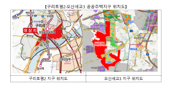 【구리토평2·오산세교3 공공주택지구 위치도】