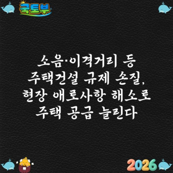 □ 정부가 주택건설기준을 현실에 맞게 손질한다. 국토교통부(장관 김윤덕)는 소음 측정과 이격거리 등 주택건설 과정의 걸림돌이었던 규제를 합리화해, 주택 공급이 현장에서 더 빠르고 안정적으로 이뤄지도록 제도를 개선한다.