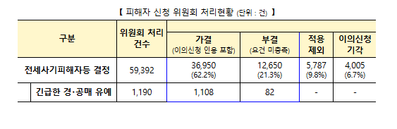 ㅇ 가결된 501건 중 478건은 신규 신청(재신청 포함) 건이고, 23건은 기존 결정에 이의신청을 제기하여 「전세사기피해자법」 제3조에 따른 전세사기피해자의 요건 충족 여부가 추가로 확인되면서 전세사기피해자 및 피해자등으로 결정됐다.