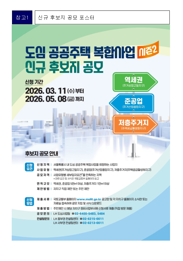 ㅇ (공모 문의) LH 도심사업팀 02-6400-5483, 5484