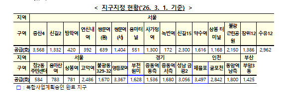 < 지구지정 현황(‘26. 3. 1. 기준) >