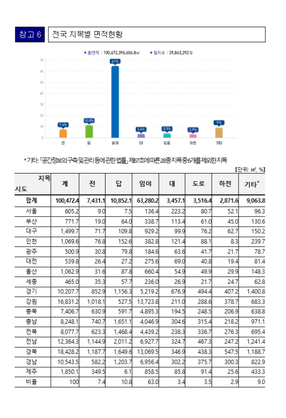 □ 국토교통부 성호철 국토정보정책관은“지적통계는 지적공부(토지정보등록부)에 등록된 전 국토의 면적과 이용현황 등의 변화를 수치로 확인할 수 있는 중요한 자료인 만큼 수요기관에 적기에 제공하고,
