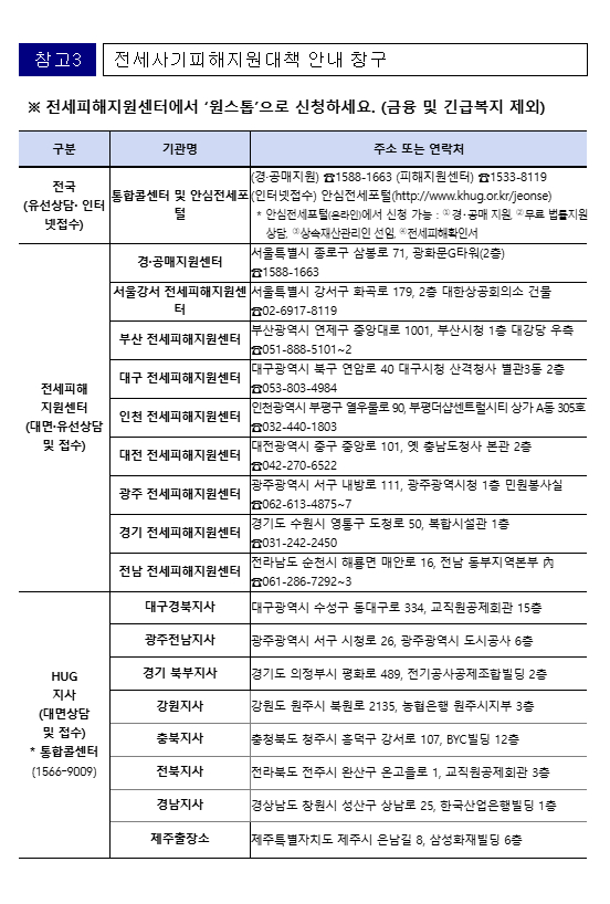 □ 전세사기로 어려움을 겪고 있는 임차인은 거주지 관할 시・도에 피해자 결정 신청을 할 수 있고, 위원회 의결을 거쳐 피해자로 결정된 자는 주택도시보증공사(HUG) 전세피해지원센터(대면・유선) 및 지사(대면)를 통해 지원대책에 대한 자세한 안내를 받을 수 있다.(☞ 세부내용 참고자료 첨부)