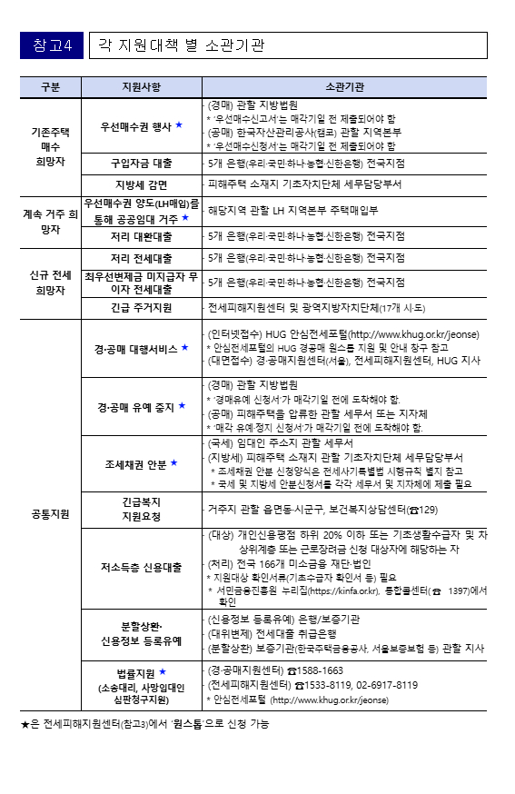 ㅇ (주거지원) 피해자는 경매차익*을 보증금으로 전환하여 피해주택에 계속거주(최대 10년)할 수 있으며, 퇴거시에는 피해자에게 경매차익을 지급하여 피해회복 지원