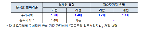 □ (용적률 완화) 역세권 유형의 준주거지역에만 적용되던 용적률 법적 상한 완화(1.4배)를 역세권 내 일반주거지역과 저층주거지 유형으로 확대한다.