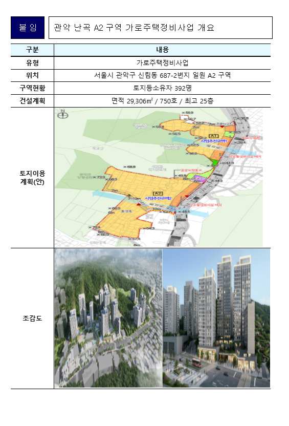 【 관악 난곡 A2 구역 가로주택정비사업 개요 】