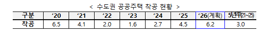 □ 먼저, 올해 수도권 착공 물량을 점검한 결과, 당초 계획대로 6.2만호 착공을 차질없이 추진한다.