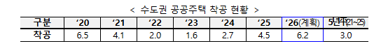 □ 먼저, 올해 수도권 착공 물량을 점검한 결과, 당초 계획대로 6.2만호 착공을 차질없이 추진한다.